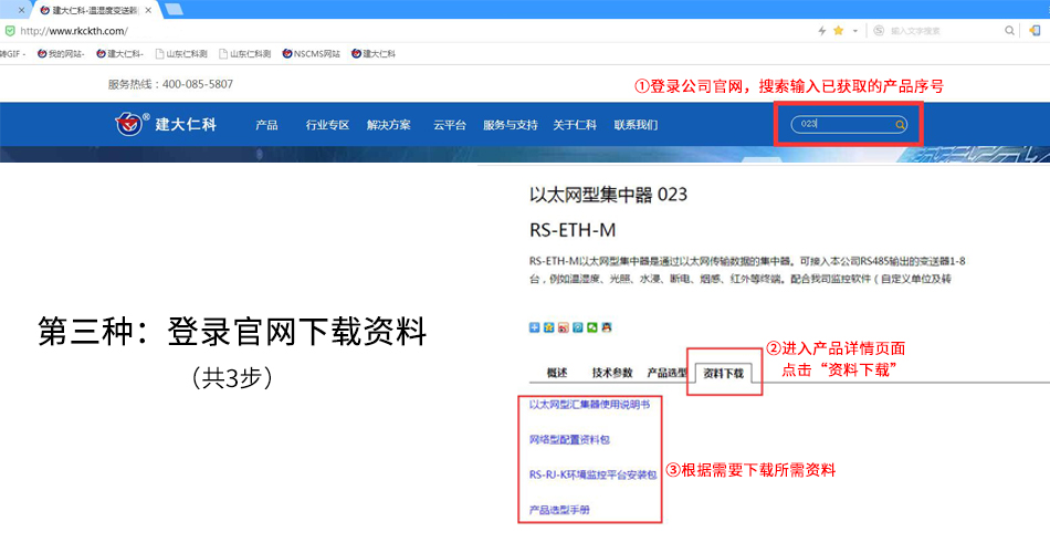 在官網(wǎng)搜索通過產(chǎn)品序號(方法一和方法二得到的),下載產(chǎn)品的更多資料: