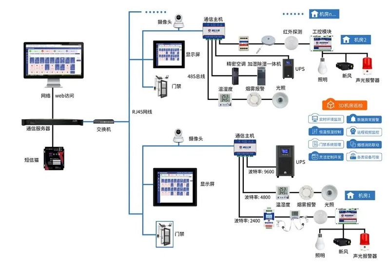 機房動力環境監控系統不僅可以用于機房,還可以用于配電室、檔案庫房、工作車間、圖書館、博物館、孵化生化實驗室......所有需要動力環境監測的場所。
