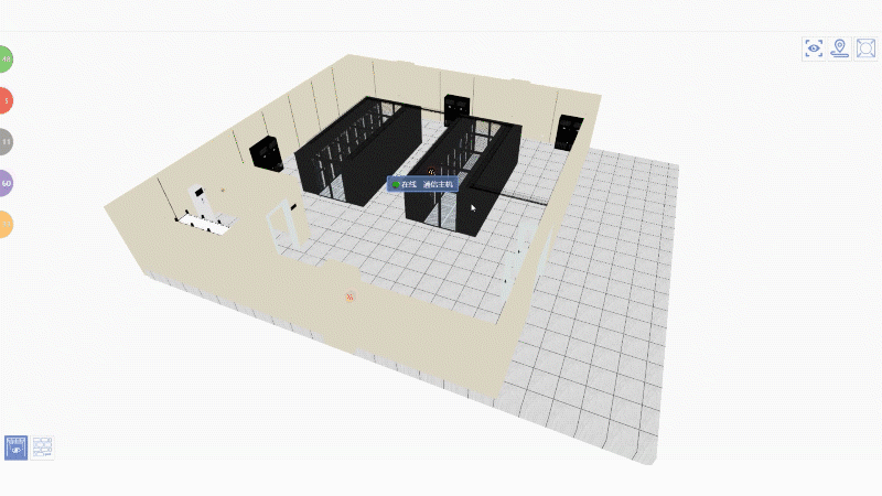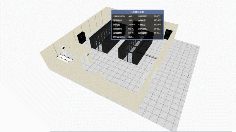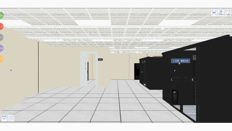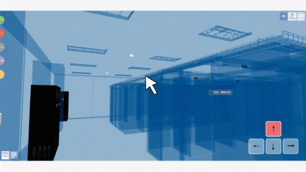 通過鼠標配合鍵盤上下左右按鍵操作,巡檢人員可以以第一人稱視角在模擬場景中自由“行走”,視角可以實現360度旋轉,支持多角度切換,讓巡檢人員能夠真實形象地感知機房場景。