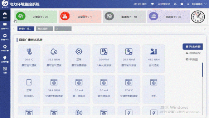 用戶可以通過機房動力環境監控系統平臺以平面圖/列表/視頻監控的方式查看各設備監測到的數據,包括但不限于溫/濕度監測、漏水監測、非法入侵監測、煙霧監測、空氣質量監測、光照監測、六氟化硫監測等。