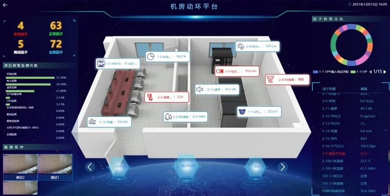 動力環境監控系統大屏可視化采用獨特設計,自動輪顯所有機房數據,比如:機房平面圖、不同因子狀態(異常、正常、離線、全部)統計,因子異常占比、各個檢測項以及各個因子的數據、門禁狀態的查看和控制及視頻監控等,滿足用戶可視化需求,讓用戶全面、精準地掌握各個機房的運行狀態,提高管理效率和響應速度。