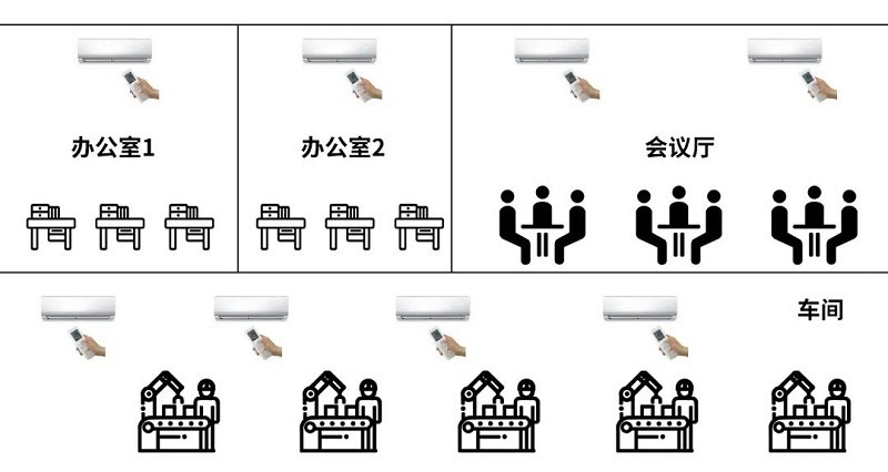 無論是酒店、商場,還是工廠、辦公室,空調遙控器與空調之間普遍存在【1對1】混雜著【1對多】的控制方式,導致遙控器數量多,控制分散,管理困難,而傳統的學習器控制模式較為單一,學習的功能又相對有限,容易導致用戶在使用過程中遭遇“溫度可調但模式不可控”的尷尬局面。