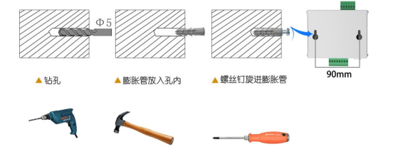葫蘆孔安裝:在墻面固定位置打入自攻絲及膨脹螺絲,壁掛方式掛接到葫蘆孔。