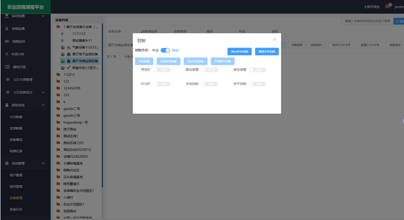 4- 交互技術(shù),用戶可通過手機(jī)/電腦端遠(yuǎn)程對蟲情測報(bào)儀的引蟲燈、殺蟲倉、烘干倉、攝像頭等核心部件進(jìn)行精準(zhǔn)操控:遠(yuǎn)程啟閉誘蟲燈以適配晝夜節(jié)律,調(diào)節(jié)烘干倉溫度防止蟲體霉變等,解決了傳統(tǒng)蟲情設(shè)備多依賴現(xiàn)場操作,在農(nóng)田分布廣、環(huán)境惡劣的場景下,設(shè)備調(diào)試難、響應(yīng)滯后、維護(hù)成本高等問題。
