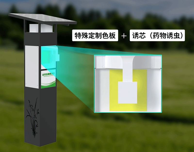 傳統(tǒng)色誘設(shè)備依賴通用色譜,難以應(yīng)對不同害蟲對光波敏感度的細(xì)微差異,色誘蟲情測報(bào)儀可 精準(zhǔn)匹配目標(biāo)昆蟲的視覺偏好,且擁有“特殊定制色板+誘芯(藥物誘蟲)”雙重保障,保證了誘蟲效率,采用納米涂層技術(shù)調(diào)控色板表面反射率,增強(qiáng)特定波長光的散射強(qiáng)度。