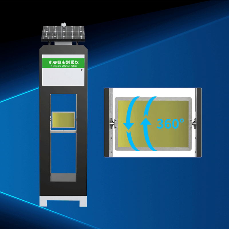 小麥蚜蟲蟲情測報(bào)儀的色板 采用同軸旋轉(zhuǎn)結(jié)構(gòu),可以使色板均勻暴露于各方位,克服傳統(tǒng)單面誘捕的盲區(qū)問題,經(jīng)過現(xiàn)場實(shí)測證明,相比固定結(jié)構(gòu),360°設(shè)計(jì)能夠使單位時(shí)間捕獲量增加120%,尤其適應(yīng)蚜蟲遷飛期的多向擴(kuò)散特性。