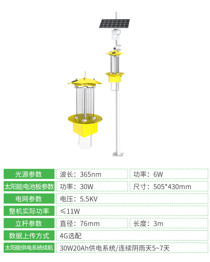 設(shè)備通過生物學(xué)特性適配(信息素+趨色性+趨光性)——誘芯+色板+誘蟲燈管(選配)的完美組合,實(shí)現(xiàn)了誘捕效率的飛躍,為小麥綠色生產(chǎn)提供了可靠的技術(shù)保障。其中,誘蟲燈管與蚜蟲趨光響應(yīng)峰值吻合,同時(shí)提升了夜間誘捕效率。