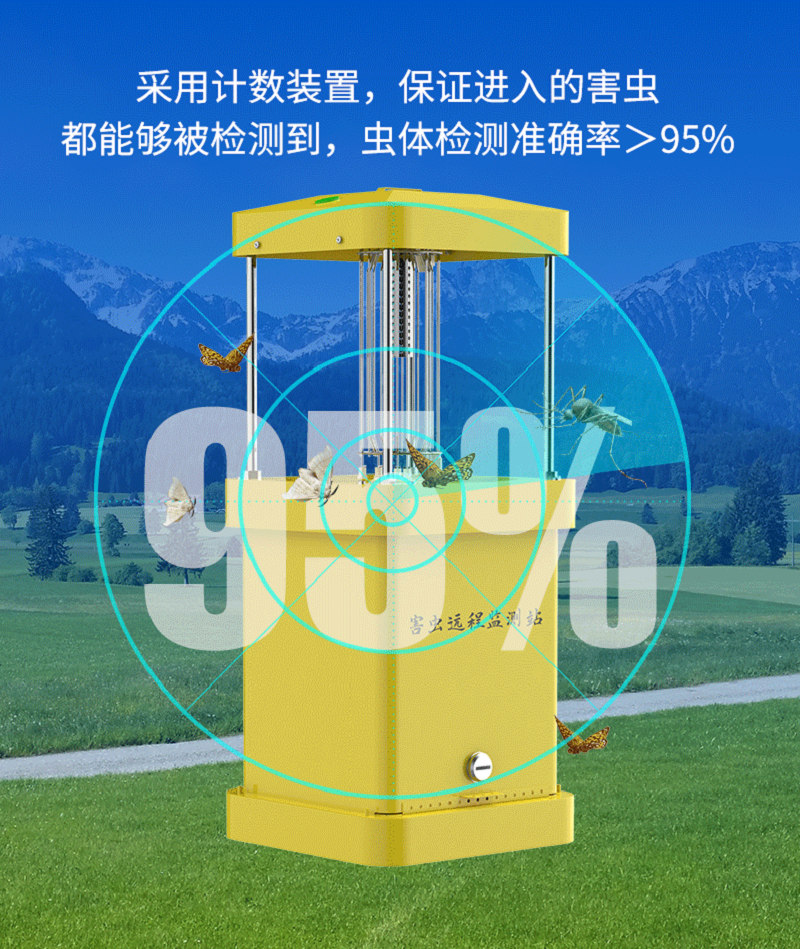 害蟲遠(yuǎn)程監(jiān)測站采用計(jì)數(shù)裝置,可保證進(jìn)入的害蟲都能夠被檢測到,蟲體檢測準(zhǔn)確率>95%。