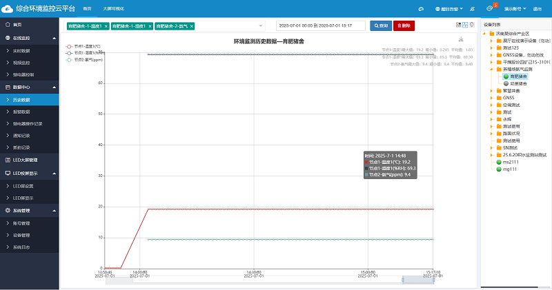 環(huán)境監(jiān)控云平臺是山東仁科回饋給用戶的免費綜合服務平臺,平臺具有實時數(shù)據(jù)查看、歷史數(shù)據(jù)查詢/導出、超限報警、智能控制、電子地圖、賬號分級、大屏可視化等功能,用戶可通過手機/電腦登錄平臺,對設備進行遠程集中管控。