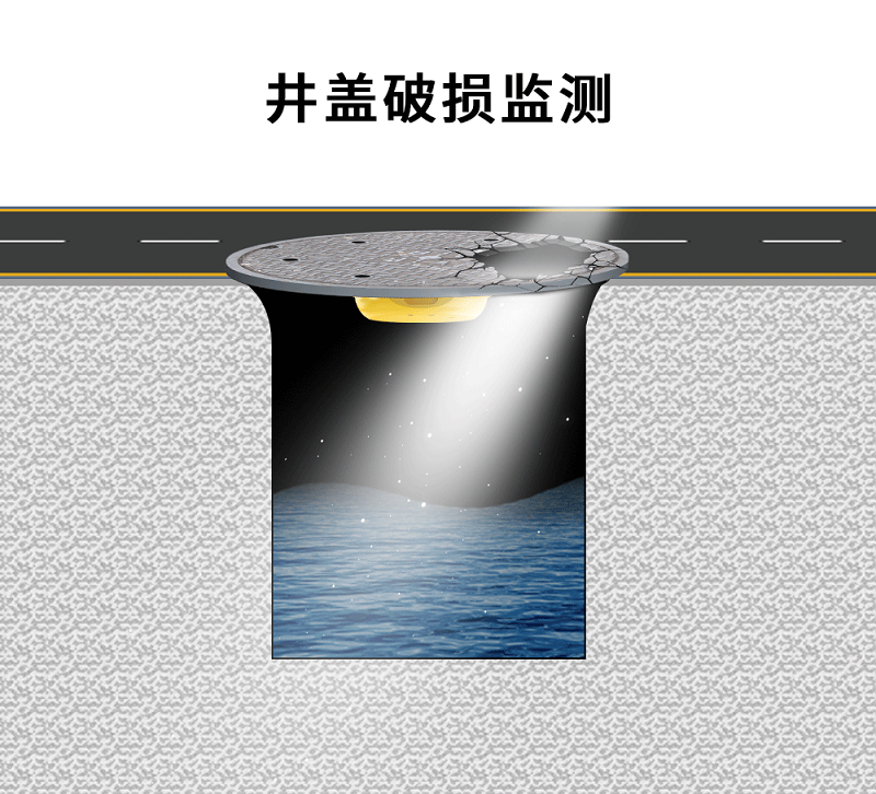 光照監測:智能井蓋傳感器能夠實時感知井蓋光照強度變化,準確判斷井蓋的覆蓋狀態,有效監測井蓋破損、非法開啟或異常位移等,為城市市政設施的安全運行提供了科學、可靠的技術保障,顯著提升了基礎設施管理的智能化水平。