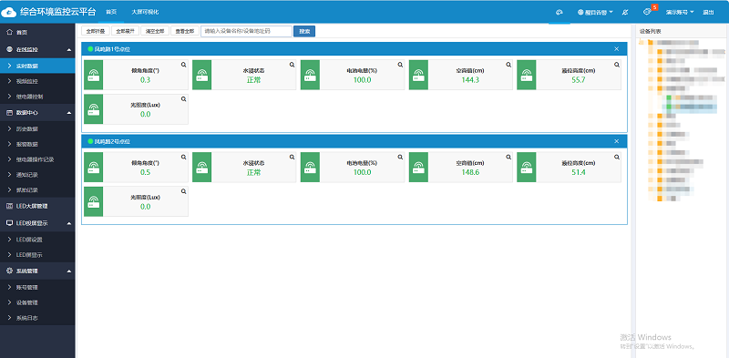 智能井蓋監測系統具備實時監測功能。管理人員可以隨時查看任一井蓋的當前狀態,包括傾角角度、水浸狀況、空高值、液位高度、光照數值、電池電量、信號值等關鍵參數,解決了傳統人工巡檢的滯后性問題,為快速響應提供了數據基礎。