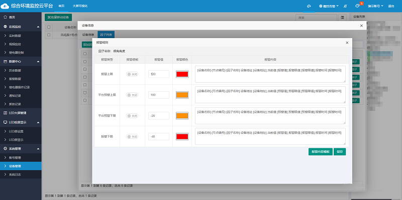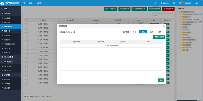 平臺具有智能控制功能。管理人員可通過平臺關聯繼電器(如語音報警器),當監測數據超限時,語音報警器可自動播報警示信息,提醒過往行人及車輛注意安全。管理人員可通過語音指令或遠程編輯報警信息,將其發送至指定報警器,從而實現實時預警,降低安全事故風險。