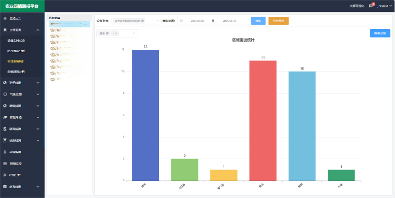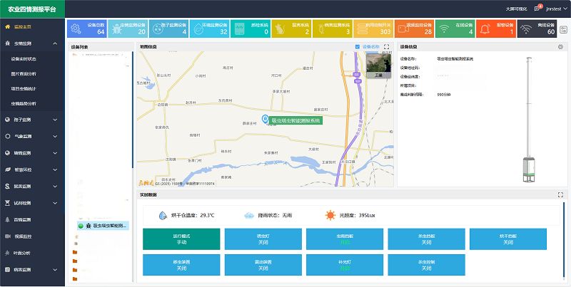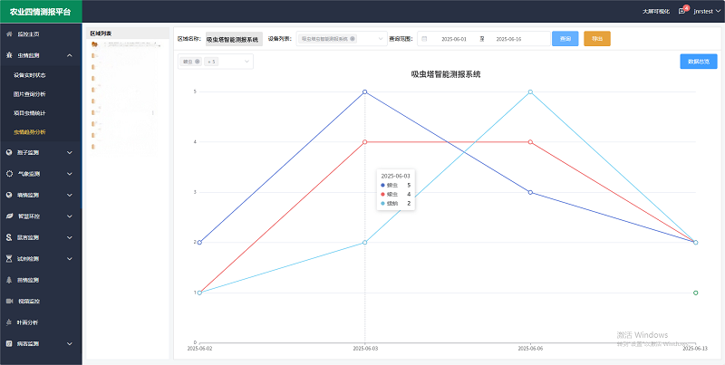 吸蟲塔智能測報系統通過與農業四情測報平臺的深度融合,構建了一套集實時監測、數據分析、遠程管控和可視化決策于一體的智能化監測解決方案,平臺功能強大,為農業生產提供精準、高效的蟲害防控手段。