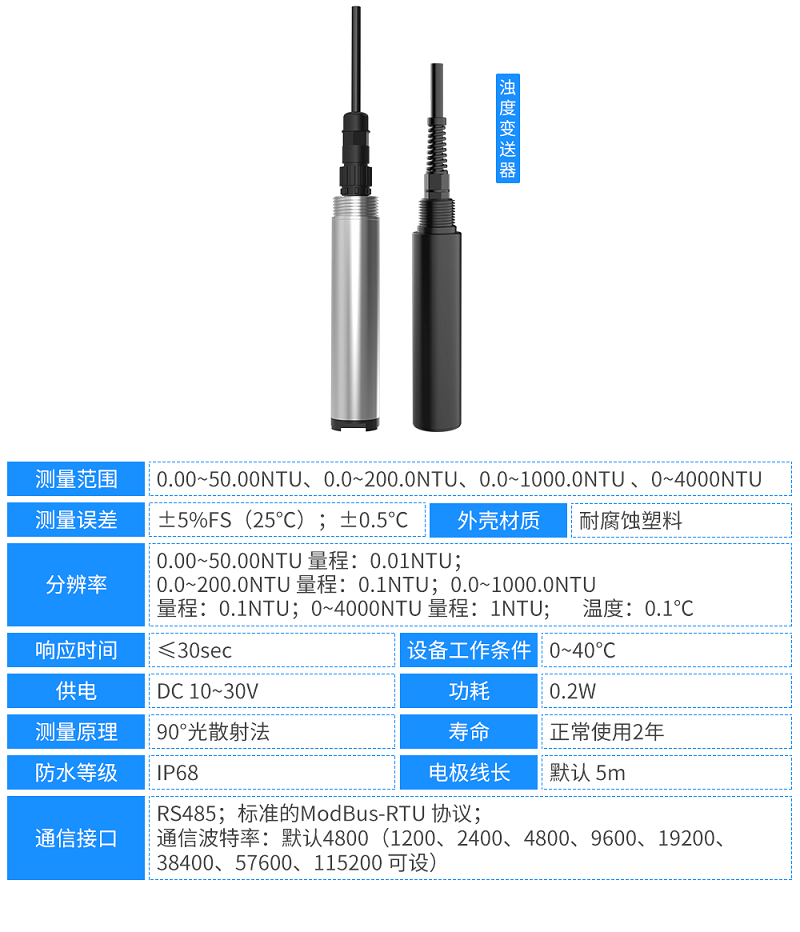 注:以上水質變送器均具備自動溫度補償功能和IP68防水等級,自動溫度補償功能可根據環境溫度變化調整測量值,避免溫度波動帶來的誤差,IP68防水等級可保障其能夠在潮濕甚至水下環境中穩定運行,適用于河流、湖泊、污水處理廠等多種場合。