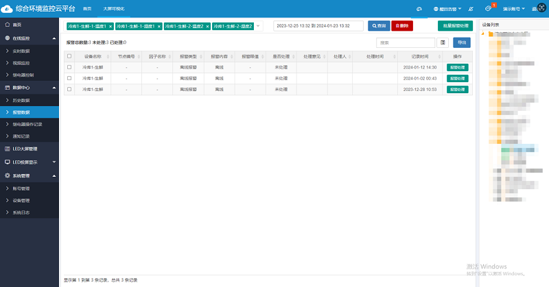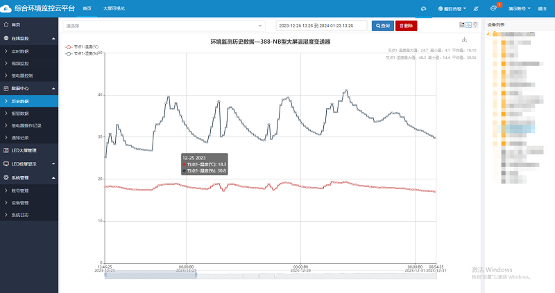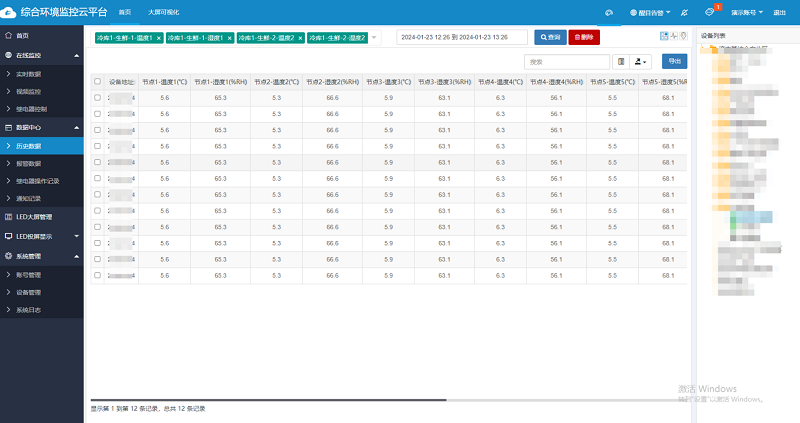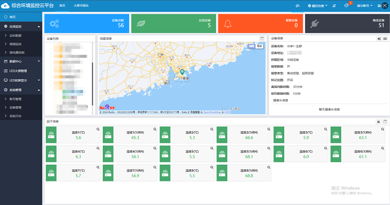通過綜合環境云平臺用戶可遠程查看環境狀態,實現對多個冷鏈節點的集中監控。云平臺不僅能對數據進行實時分析,還能存儲歷史數據并生成趨勢報表,幫助用戶總結溫濕度、氣體變化規律,優化冷鏈流程。當系統發現溫濕度異常時,可自動向用戶發出警報,便于及時采取調整措施。