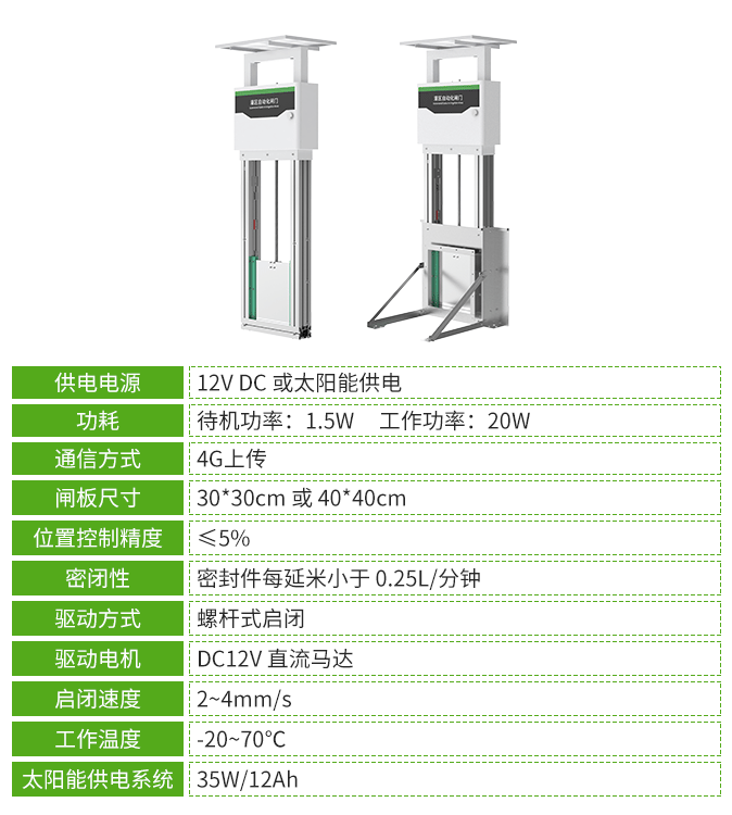 閘門能夠實時采集水位、過閘流速等關鍵數據,并依據預設的目標流量參數,自動調節閘門的開啟程度及啟閉狀態,確保水流管理的精確性與高效性,不僅能提供詳盡的用水記錄,助力用戶精準掌握水資源使用情況,還支持本地直接操控與遠程網絡監控的雙重管理模式。用戶可通過農業云平臺隨時隨地查看閘門狀態、監控水流動態,實現管理的便捷化與實時化。