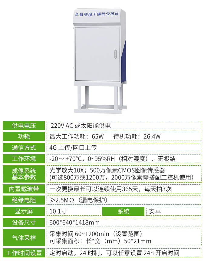 孢子捕捉儀是一種用于收集空氣中隨氣流傳播的病原菌孢子及花粉塵粒的專用設備。該儀器采用特殊氣流循環技術有效降低采樣重復率,確保5~100μm孢子高效捕獲,采集效率較傳統方式提升40%,能夠有效捕獲空氣中的微小目標體。設備內置載玻帶(一次更換最長可以連續使用365天),可有效避免重復采集,實現全年孢子動態的可視化監測與追溯。配備高清CMOS圖像傳感器,可拍攝500萬/800萬/1200萬/2000萬像素孢子圖像,清晰呈現孢子的形態特征。