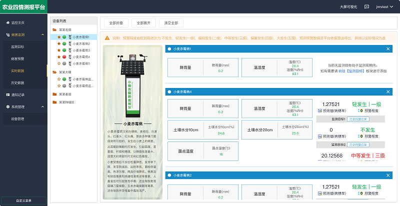 這種 “實時監測 + 云端分析”的模式,打破了傳統防控的滯后性,讓用戶能提前制定針對性防控方案,避免盲目投藥造成的資源浪費與環境影響,減少作物損失,保障農業生產安全。