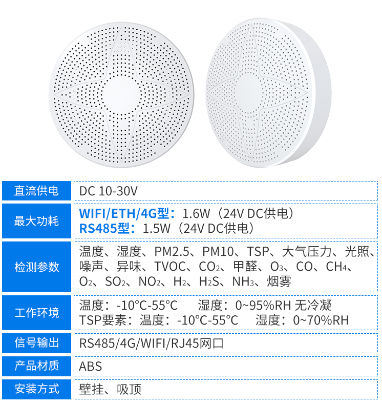 這兩種安裝方式均能保證多功能空氣質量變送器始終處于良好的監測狀態,用戶無需復雜操作或使用額外配件,即可快速完成設備的安裝部署,大大提升了安裝效率。