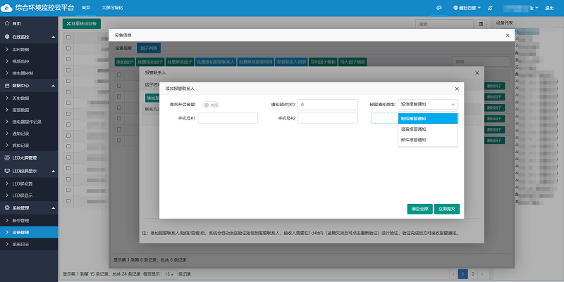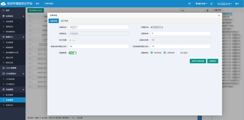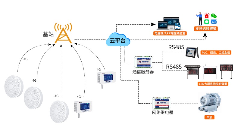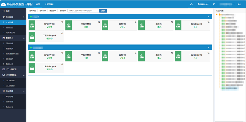 用戶可憑借專屬賬號在手機/電腦免費登錄環境監控云平臺,平臺具有數據實時查看、歷史數據查詢/導出、智能預警、電子地圖、視頻查看/抓拍、智能控制、數據共享、大屏可視化等功能,可幫助用戶實現空氣質量監測數據的遠程查看與設備的遠程管理。