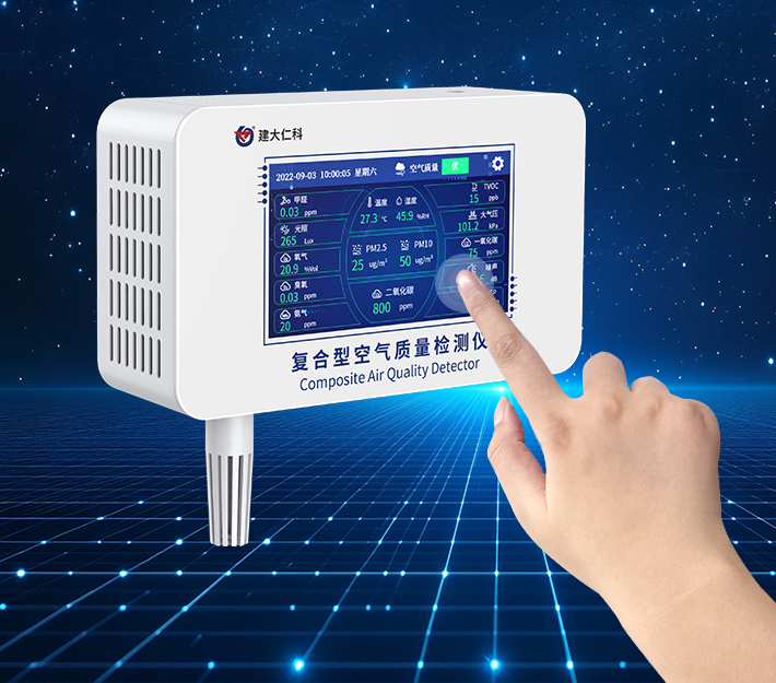復合型空氣質量檢測儀的高清觸摸屏兼顧數據展示和參數設置功能。