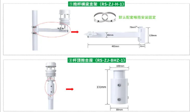 01  基礎款設備支持抱桿橫梁支架、桿頂抱合座兩種安裝方式。
