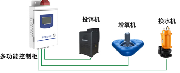 該設備可接入現場的增氧泵、投餌機、換水機等水產養殖機械設備,實現各類設備的手動、自動、定時控制,大大減少施工量,降低施工成本和維護成本,提高養殖效益。