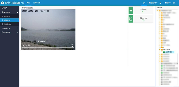 可投屏顯示,自動刷新,集中滾動顯示各監測點的環境監測數據,實時展現水位、降雨量等要素的動態曲線,數據清晰、直觀,便于管理人員進行系統查看。